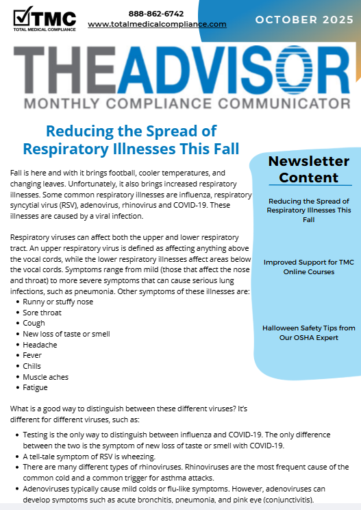 Our free monthly newsletter, The Advisor, covers important topics and updates in the world of medical and dental compliance. Sign up below to get all this information delivered right to your inbox.